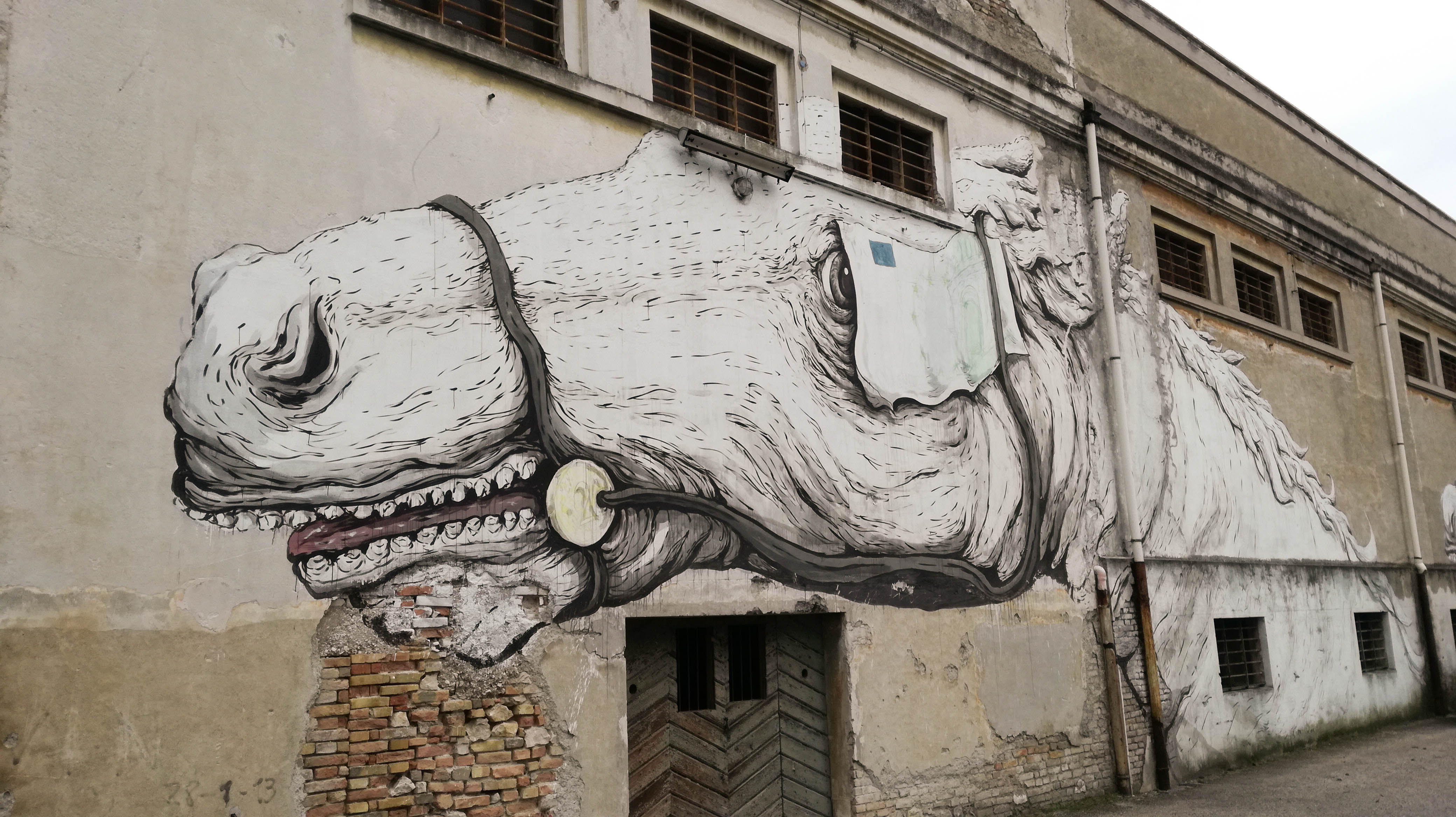 ![]() | Opera realizzata da Ericailcane, Hitnes e Dem presso il Centro di Palmetta a Terni, in occasione di Nutrimenti 2010 |
