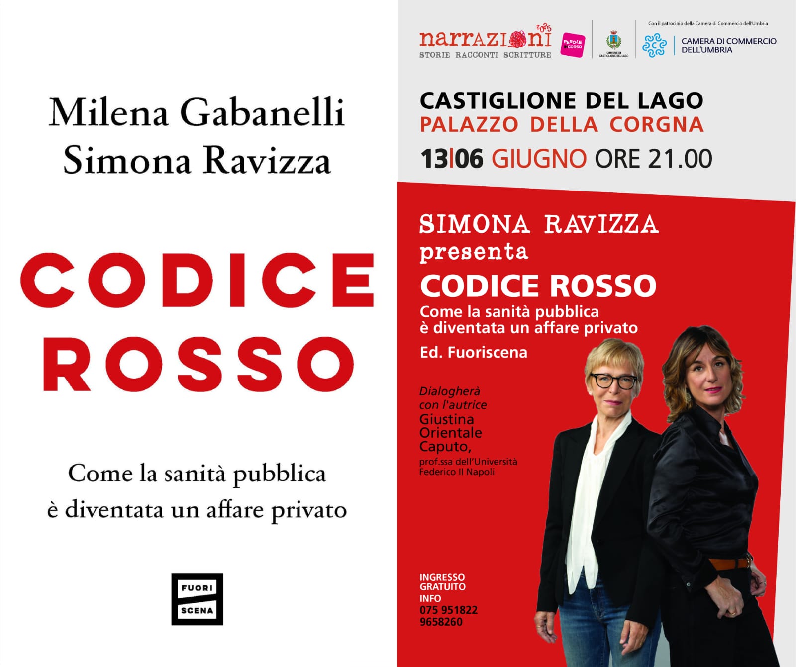 Per la serie di incontri NarrAzioni 2025: storie, racconti, scritture, la Biblioteca comunale di Castiglione del Lago, in collaborazione con l'Associazione "Parole in corso" APS, è lieta di ospitare all'interno di Palazzo Della Corgna le autrici Milena Gabanelli e Simona Ravizza che ci parleranno del loro libro intitolato "Codice rosso. Come la sanità pubblica è diventata un affare privato", ed. Fuoriscena 2024. (