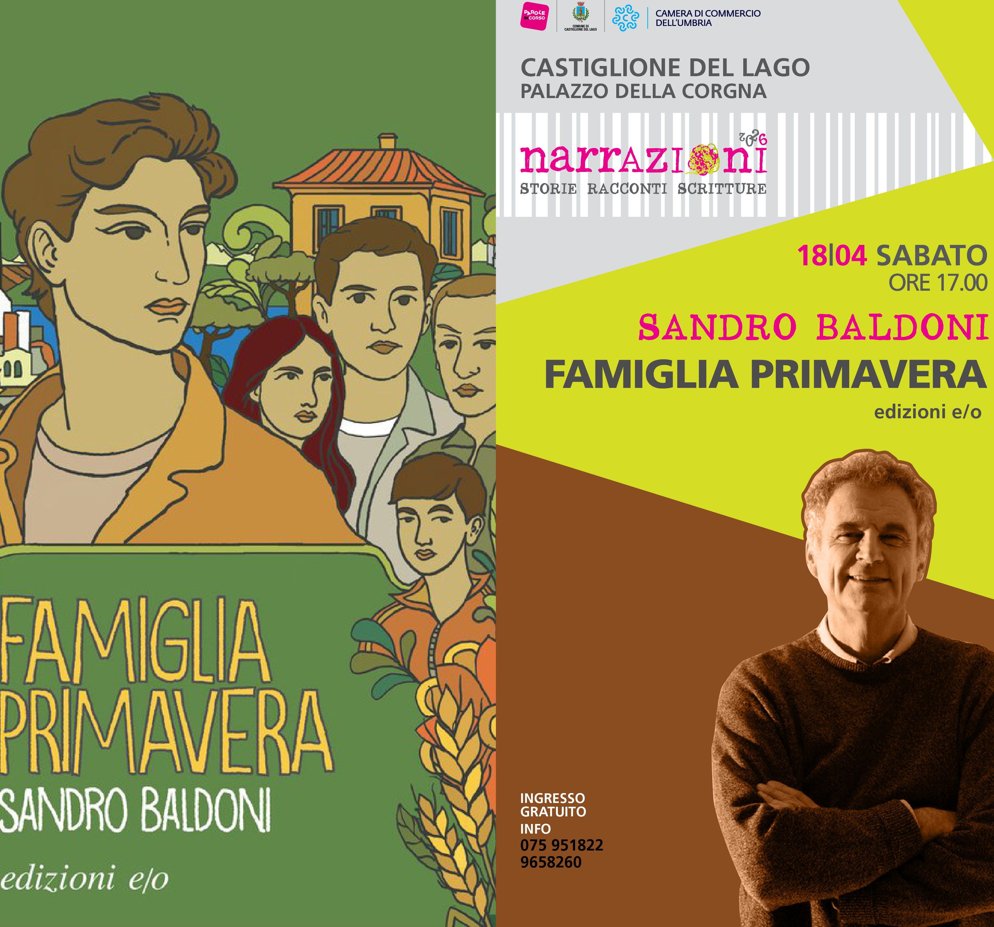 Per la serie di incontri NarrAzioni 2026: storie, racconti, scritture, la Biblioteca comunale di Castiglione del Lago, in collaborazione con l'Associazione "Parole in corso" APS, sarà lieta di ospitare, all'interno di Palazzo Della Corgna l' autore Sandro Baldoni, che presenterà il romanzo "Famiglia primavera".