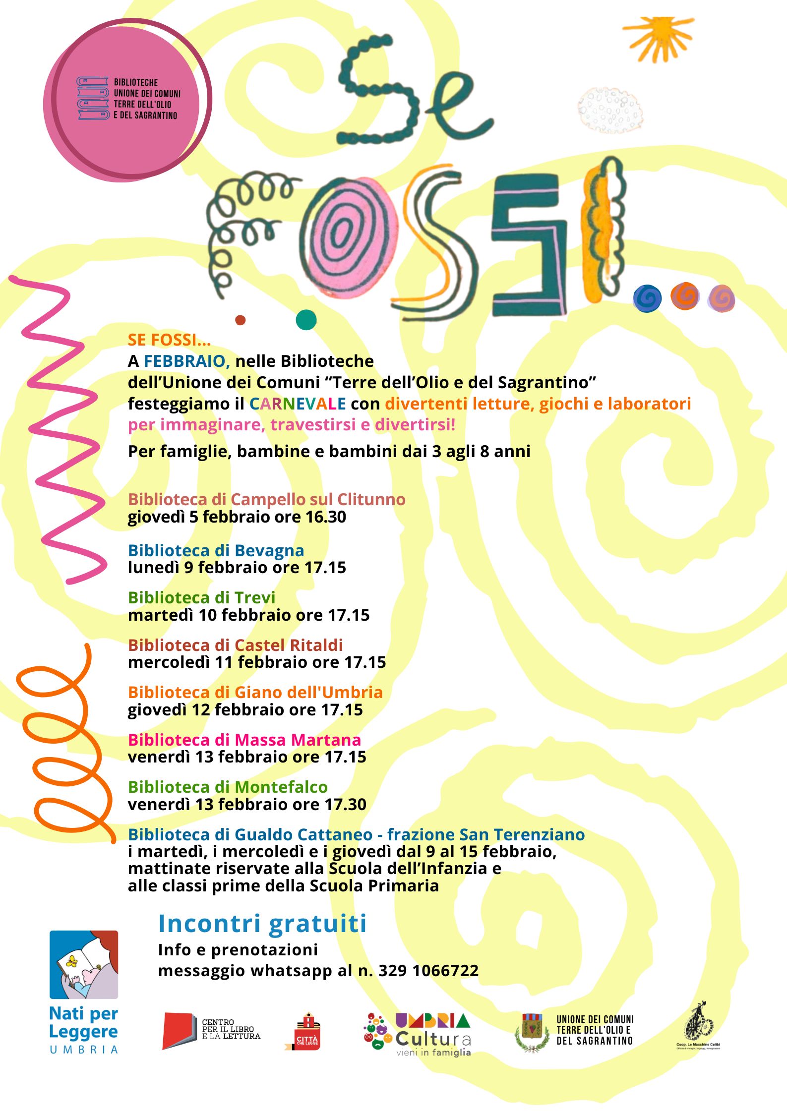 Se fossi... A ๐๐๐๐๐ง๐๐๐ nelle Biblioteche Unione dei Comuni “Terre dell’Olio e del sagrantino” festeggiamo il ๐พ๐๐๐ก๐๐๐๐ณ๐ฌ con divertenti letture, giochi e laboratori per immaginare, travestirsi e divertirsi! I๐ฃ๐๐ค๐ฃ๐ฉ๐ง๐ ๐๐ง๐๐ฉ๐ช๐๐ฉ๐ p๐ฒ๐ฟ ๐ณ๐ฎ๐บ๐ถ๐ด๐น๐ถ๐ฒ, ๐ฏ๐ฎ๐บ๐ฏ๐ถ๐ป๐ฒ ๐ฒ ๐ฏ๐ฎ๐บ๐ฏ๐ถ๐ป๐ถ ๐ฑ๐ฎ๐ถ ๐ฏ ๐ฎ๐ด๐น๐ถ ๐ด ๐ฎ๐ป๐ป๐ถ ๐ผ๐๐๐ ๐ ๐๐๐๐๐๐ก๐๐ง๐๐๐๐: ๐๐๐ ๐ ๐๐๐๐๐ ๐คโ๐๐ก๐ ๐๐๐ ๐๐ ๐. 329 1066722