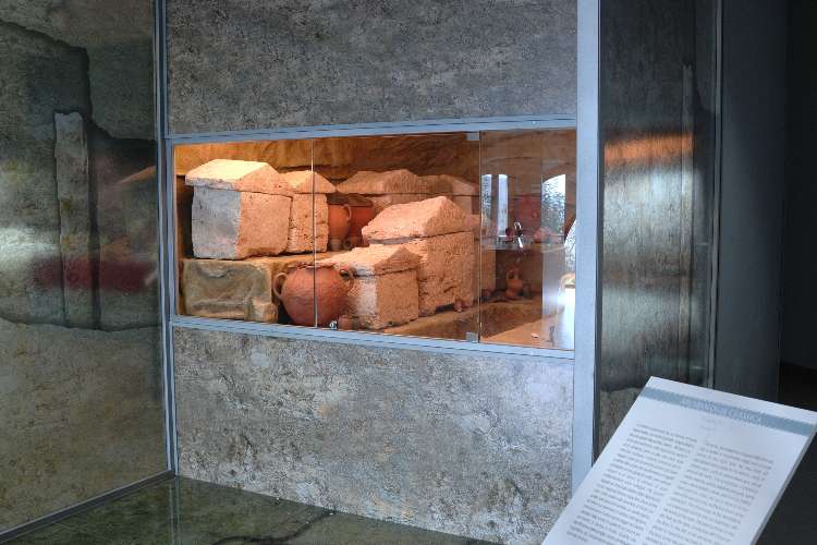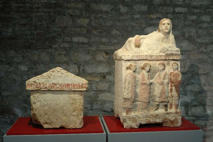 The Hellenistic period is represented by materials coming from the Etruscan Necropolises of Strozzacapponi and Fosso Rigo, with the reconstruction of three burial sites that have their funerary goods placed in the