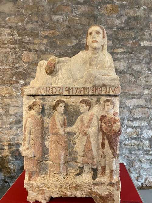 original position. The section ends with an interesting nucleus of items from the Roman period, represented by the finds coming from the Roman Villa of Palazzo Grande and the funerary goods from the so called