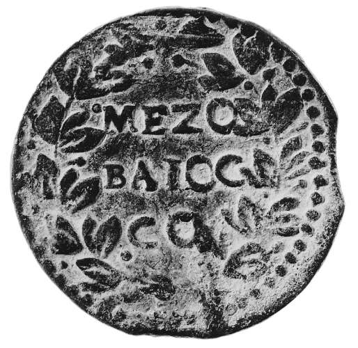 (due bisanti) MEZO / BAIOC/ CO/ tra due rami d’alloro salienti legati in basso