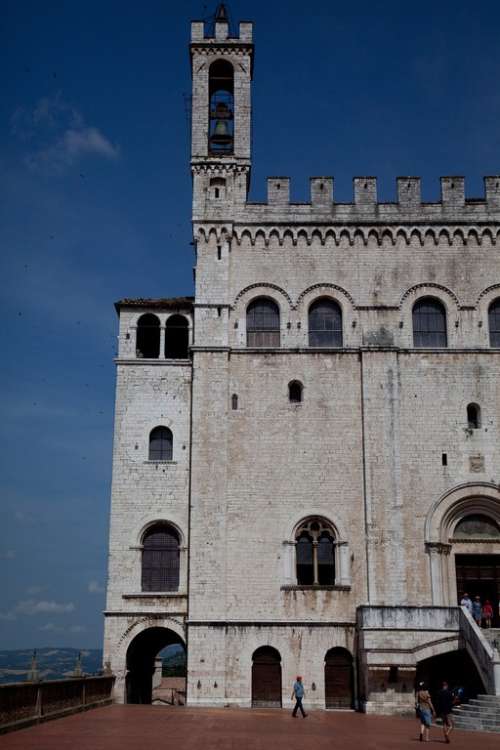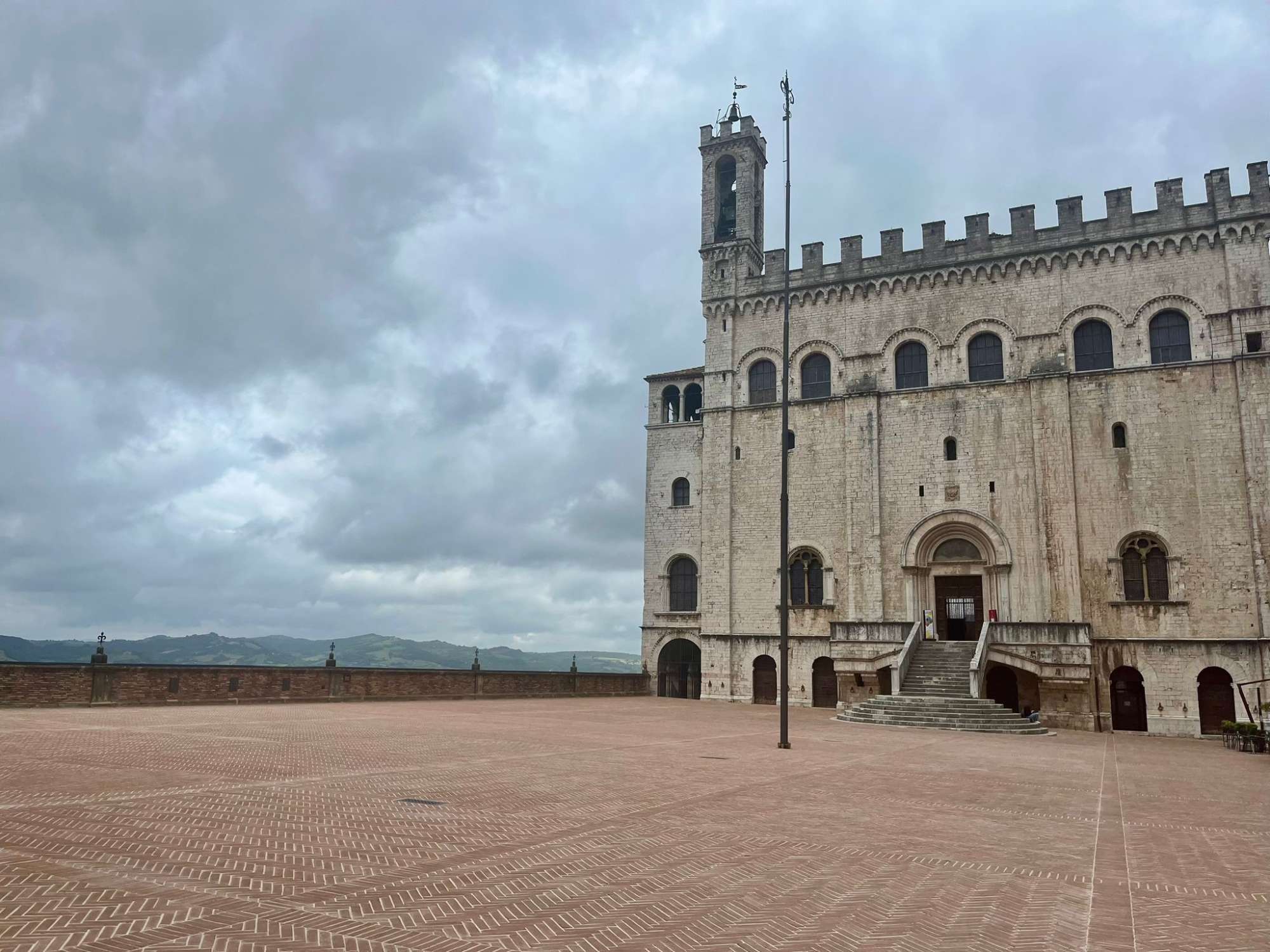 Il Palazzo dei Consoli, ben visibile anche da lontano, si trova nel centro storico di Gubbio. La sua facciata prospetta sulla piazza Grande, terrazza pensile, fulcro politico della città trecentesca. L’edificio è la sede del Museo civico, al cui interno si possono vedere le Tavole eugubine, preziosa testimonianza bronzea della lingua umbra.