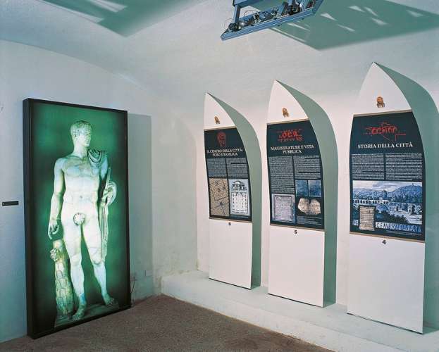 The exhibition itinerary illustrates the dynamics of the settlement around Otricoli, in its transformation from a Pre-Roman village on high ground to a Roman town built on the Tiber Valley, up to the current town built on the same place as the former village. Particular attention is paid to the archaeological collection that serves as an introduction to the visit to the Archaeological Park of the Roman Town of Ocriculum, which was one of the wealthiest and most vital centers thanks to the trading that took place along the Flaminian Way and the Tiber River between the 1st century B.C. and the 1st century A.D.