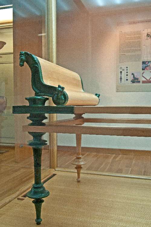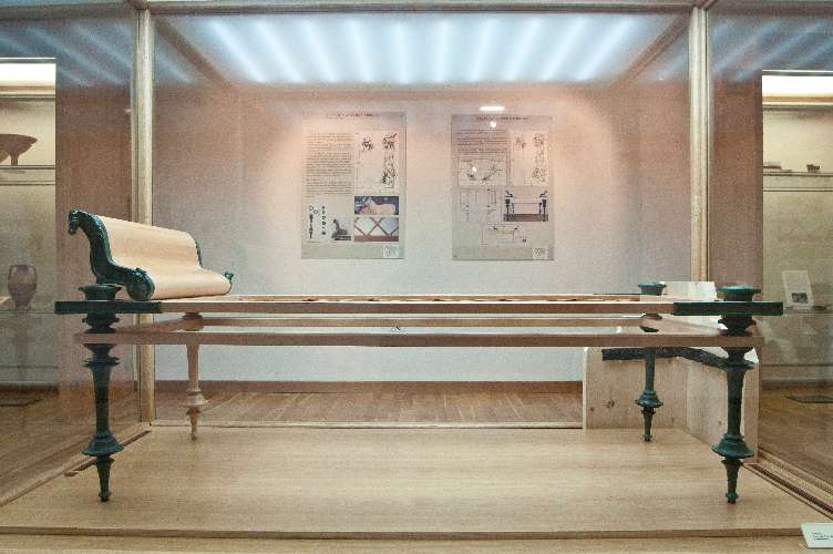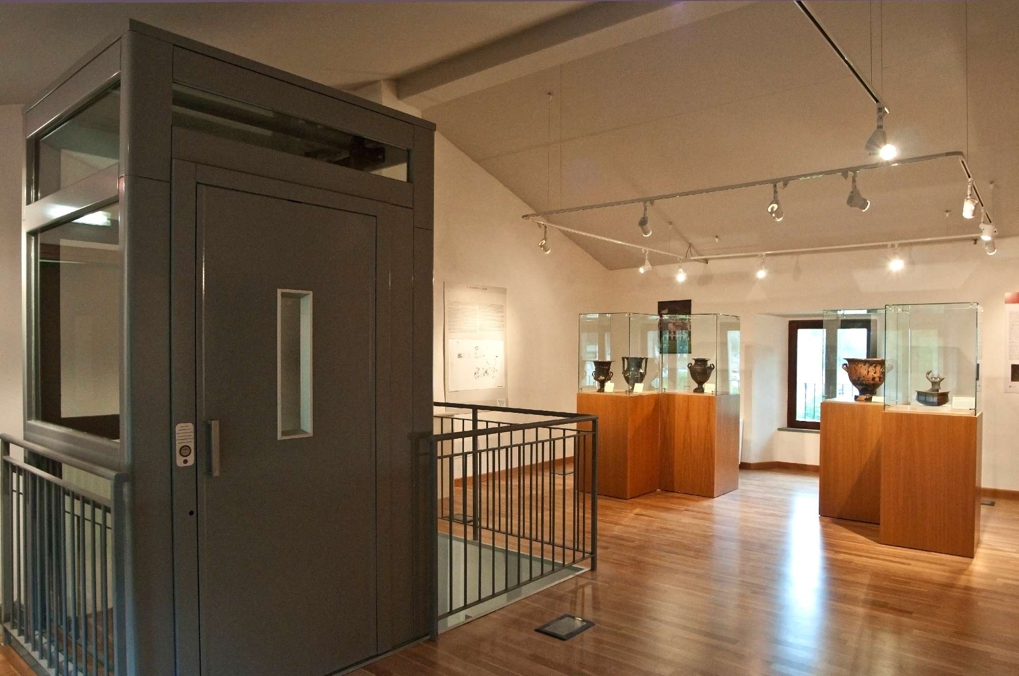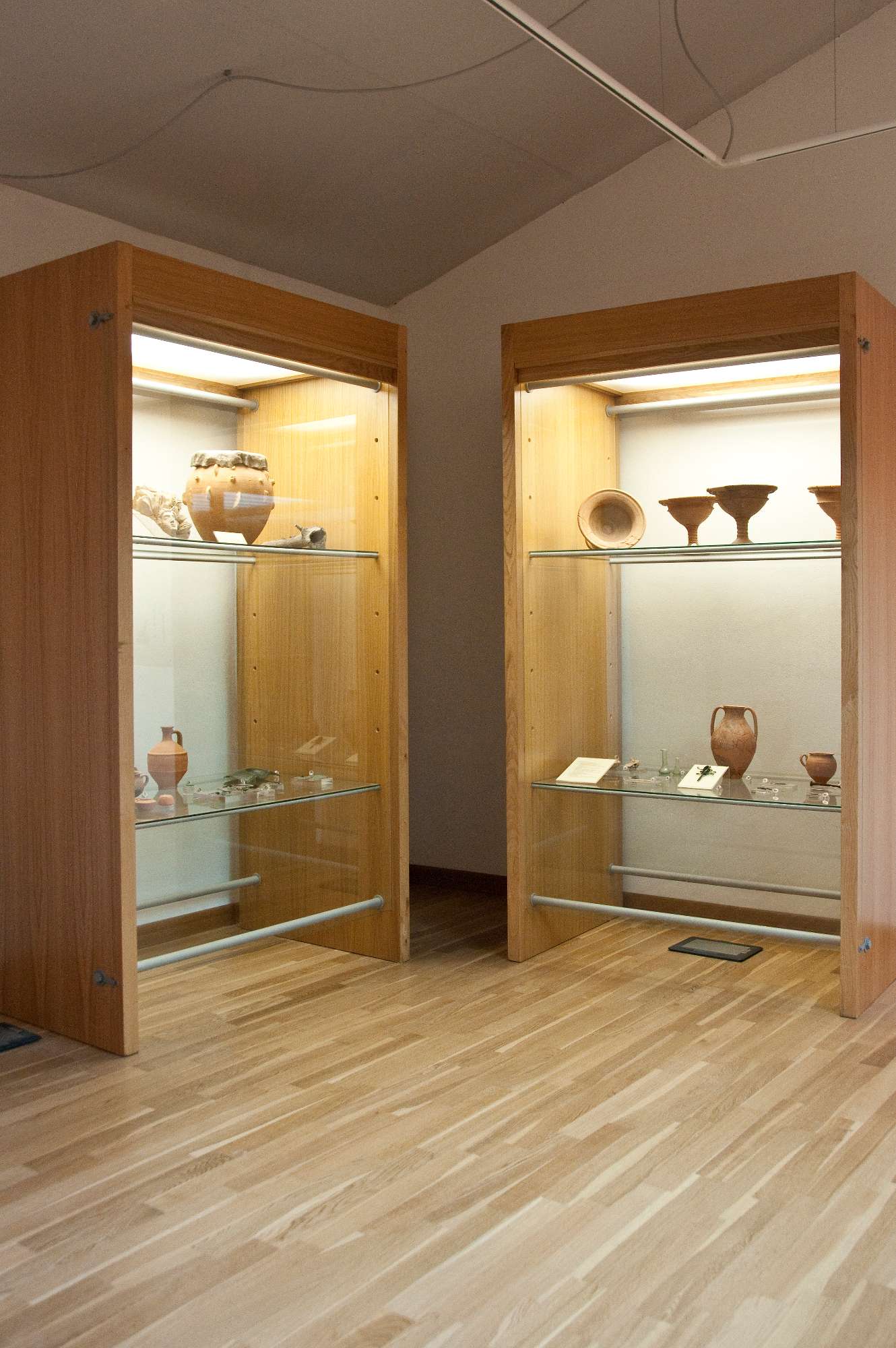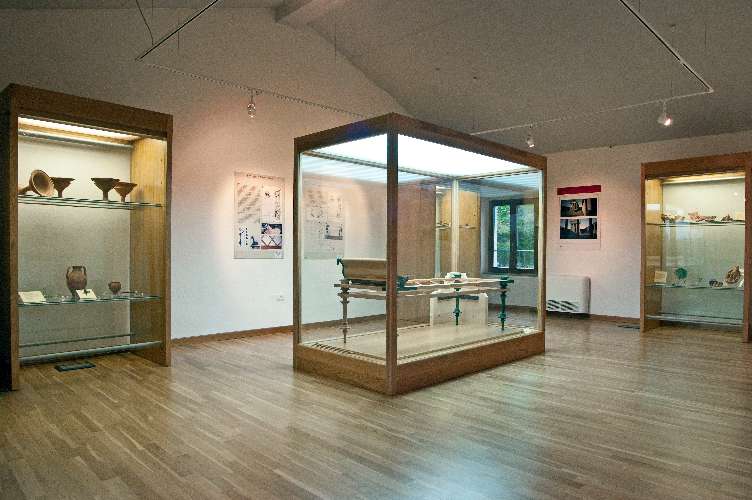 Of the four preserved rooms, the largest shows a mosaic reproducing a geometrical pattern framing the scene—from Homer’s Odyssey of Ulysses and Scylla—executed by assembling small polychrome tesserae—a type of mosaic called Opus Vermiculatum—inspired by Hellenic painting models. The rest of the display is focused on the history and development of the town and the territory, all documented with panels and materials coming from excavations in town and the necropolis. The three black Kraters—vases in Greek—come from the Necropolis of San Biagio, in use between the 7th and 2nd centuries B.C., and remind one of the elegant forms in precious metals.