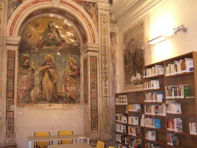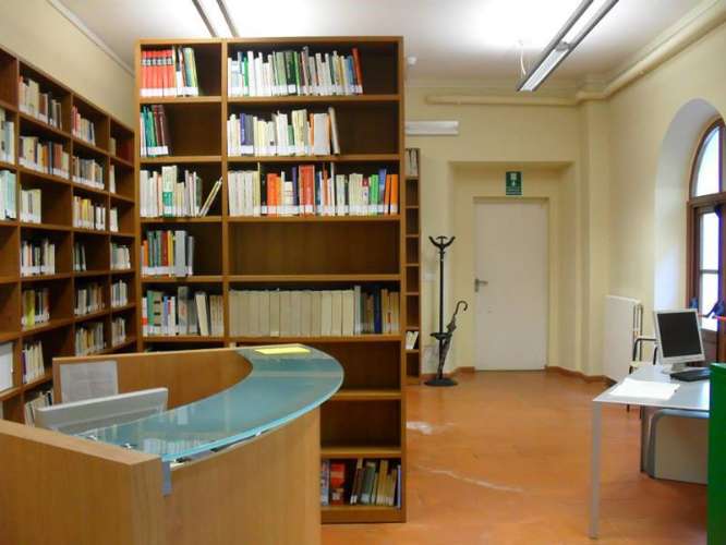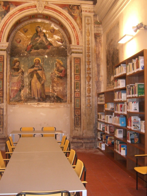 Inaugurata ufficialmente il 22 dicembre 2007, la biblioteca è situata nell'Oratorio di San Jacopo, all'interno dell'ex Collegio Vitale Rosi, e conserva affreschi del XVI secolo.