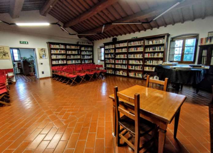 La Biblioteca comunale di Corciano ha sede in una casa colonica del XVI secolo in vocabolo "La Commenda": faceva parte dei possedimenti dell'Ordine dei Cavalieri di Malta e apparteneva alla Commenda di San Luca. Adiacente la biblioteca è un giardino pubblico ombreggiato attrezzato con panchine. L'edificio, pur se reso idoneo ad accogliere la Biblioteca e l'Archivio storico, conserva intatte le sue originali caratteristiche di casa colonica: la scala esterna e il poggiolo, il pozzo, le capanne degli attrezzi, oltre allo stemma dei Cavalieri scolpito in pietra serena.