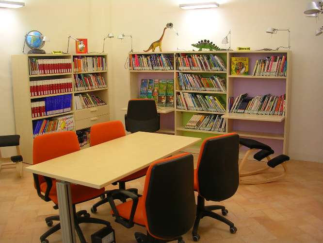 Al piano terra è anche la Ludoteca e la Sezione Ragazzi che offrono ai più giovani stimoli e suggestioni diversificate: libri parlanti, fumetti, enciclopedie cartacee e multimediali, ambienti per svolgere laboratori. Ai piani superiori sono ospitate le sale di lettura e di studio tutte dotate di postazioni informatiche collegate alla rete e nelle quali è collocato a scaffale aperto parte del patrimonio librario moderno (circa 15 mila volumi). All’ultimo piano è l’Informagiovani ove i ragazzi possono suonare con tastiera e chitarra, comporre musica e approfondire temi relativi al loro hobby.