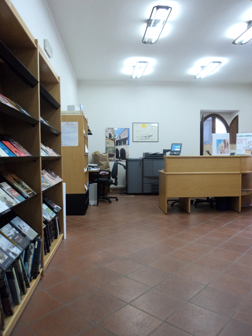 All'interno della sede è collocato il Fondo Salvatorelli di circa 2.200 volumi consultabile previa prenotazione. Il Fondo è costituito da una parte della biblioteca personale dello storico marscianese che, nel 1984, fu donata all'amministrazione comunale dai figli Franco e Mario Salvatorelli.