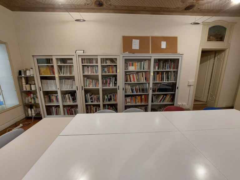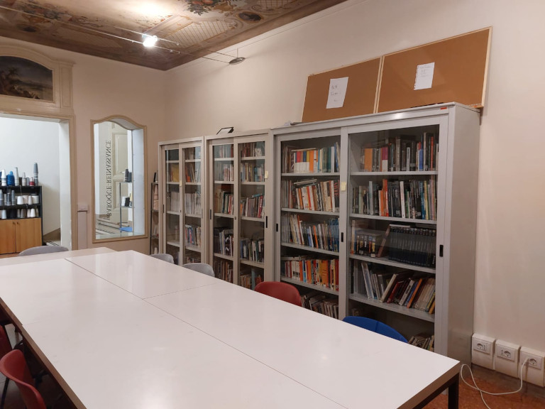 - Diverse postazioni studio con tavoli, scrivanie, sedute, poltroncine, PC e dispositivi mobili per la consultazione