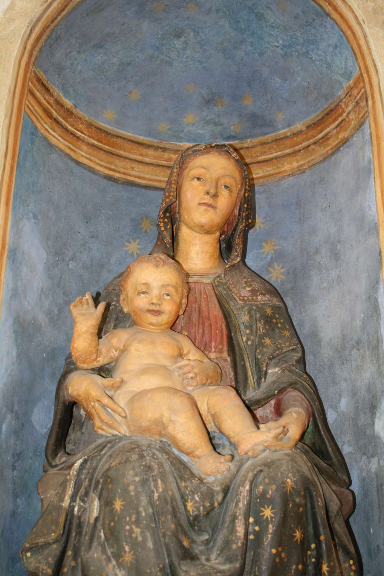 La scultura in terracotta policroma nella nicchia al centro della parete è del XVI secolo.