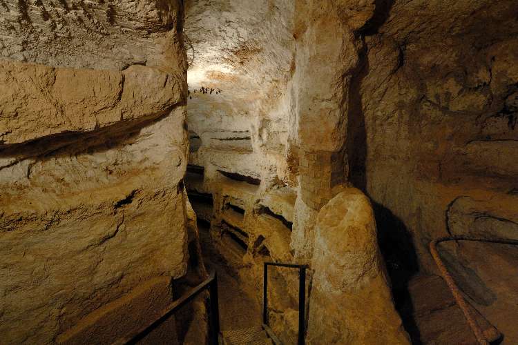 The practice of burying deceased people underground dates back to the Etruscans, but with Christianity ever more complex and vast hypogeal burials were created to host an entire community in a sole necropolis. The ancient term to designate these sites is coemeterium that comes from Greek and means “dormitory”. The term catacomb, originally used to designate only the important complex of San Sebastiano on Via Appia, was extended only later to all Christian cemeteries.