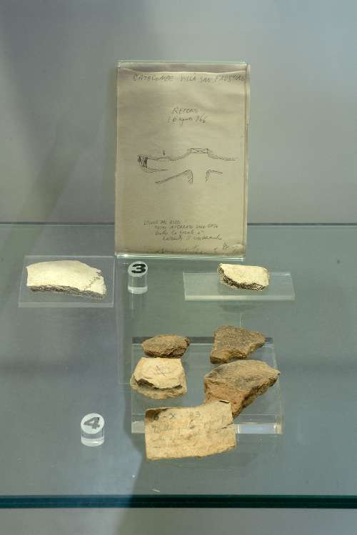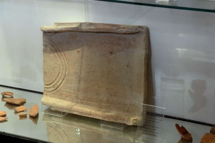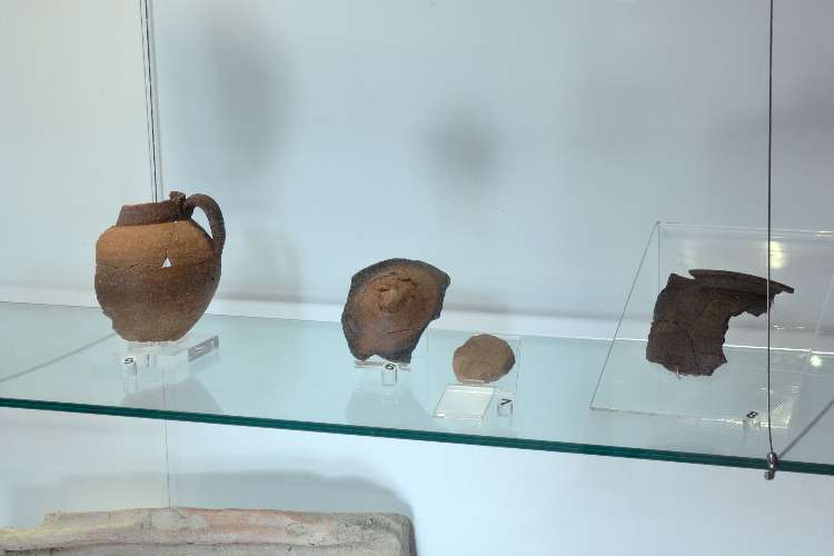 The catacombs develop through a straight corridor, 22 meters long, which penetrates inside the hill and goes 7 meters deep into the ground; four galleries depart from this corridor, two on each side, and one of them has a semi-circular course. They are 1,50 meters wide and are covered by a segmental vault. A series of niches of various dimensions open in rows along the walls, one above the other. They are often sealed with large tiles, and furnished with lucerne—simple terracotta oil lamps—while on the pavement some formae have been excavated and covered with tiles, which are engraved—before firing—with circular signs. The absence of inscriptions with the names of the deceased, which are usually found on marble slabs covering the tombs, leads to the conclusion that the catacombs belonged to an illiterate sector of society. Lucernes and other materials recovered on the site suggest the area was attended around the 4th and 5th century A.D.