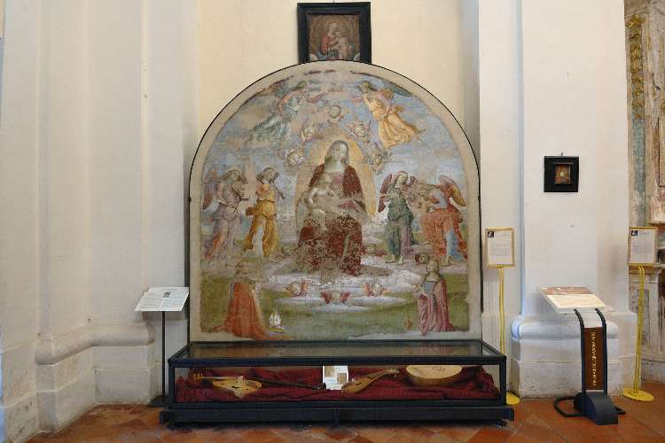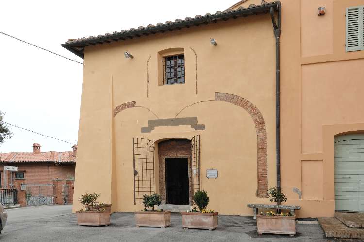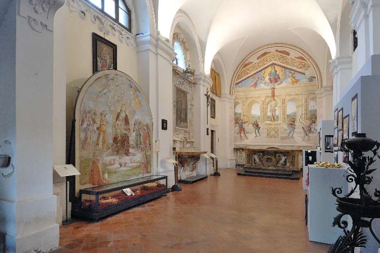 All’interno custodisce due importanti affreschi: il primo, di Pietro Vannucci detto il Perugino, rappresenta il Martirio di San Sebastiano (1505), il cui paesaggio sullo sfondo, con il lago e le dolci colline, è assai simile a quello che si apprezza appena fuori l'edificio; il secondo, di scuola peruginesca, raffigura la Madonna in trono con Bambino e Angeli musicanti, affresco staccato originariamente appartenuto alla chiesa di Sant’Agostino.
