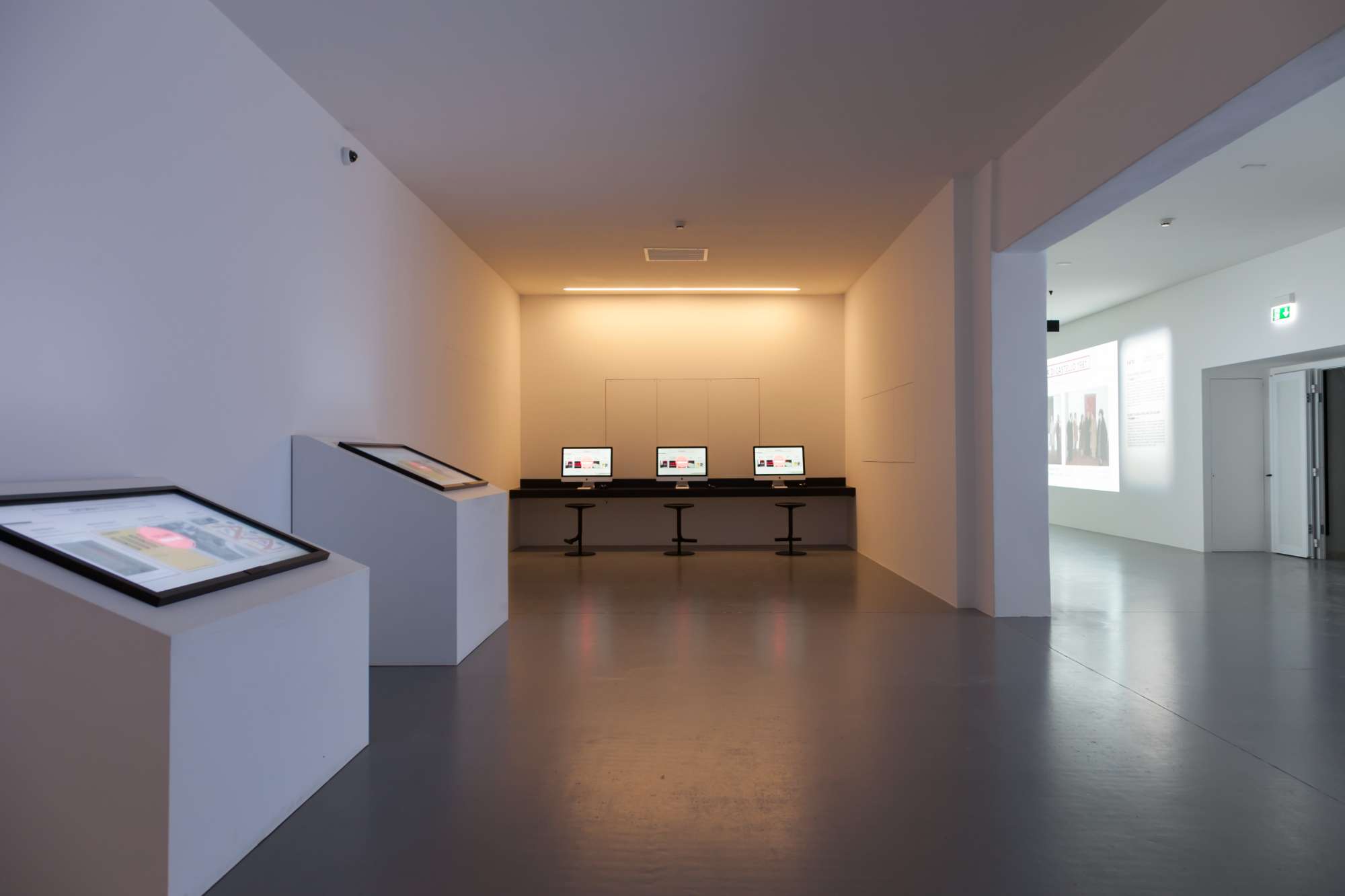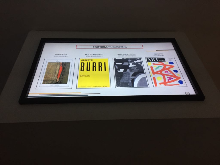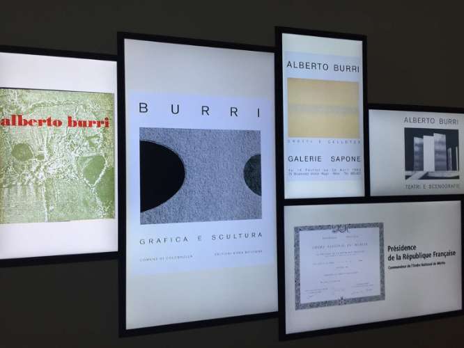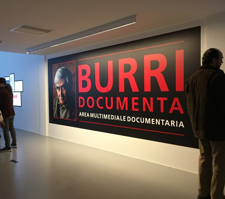 The multimedia area “Burri Documenta” follows Burri’s life (1915-1995) through original evidences, invitations, catalogues, letters, monographs, critic texts, photographs, videos and films. It is divided in three sections: A) Screening Area, B) Interactive Area 3) Media Rooms.