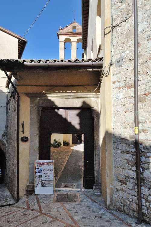 The Lucrezie Complex, located in the Nidola neighborhood, originated in the first half of the 15th century, when a noblewoman from Ancona’s Marches—old imperial administrative subdivision including the towns of Ancona, Camerino and Fermo—madonna Lucrezia della Genga endowed her sisters—in 1425—with an edifice along the wall of the town of Todi. The monastic seat, pertaining to the Franciscan Third Order, expanded rapidly in a few years with the acquisition of the adjacent buildings. However, the prosperity of the Monastery came to a halt before the economical crisis that occurred at the end of the 15th century, and degraded further after some landslides damaged the premises around 1760 and lastly with the Napoleonic laws of confiscations relating to the suppression of religious congregations in 1862. From the end of the First World War to 1987, the complex that had become Municipal property was used for disparate purposes, and in the context of the work of consolidation of the Cliff in Orvieto and the Hill in Todi, the entire structure was restructured by the effect of the law n. 545 of 1987.