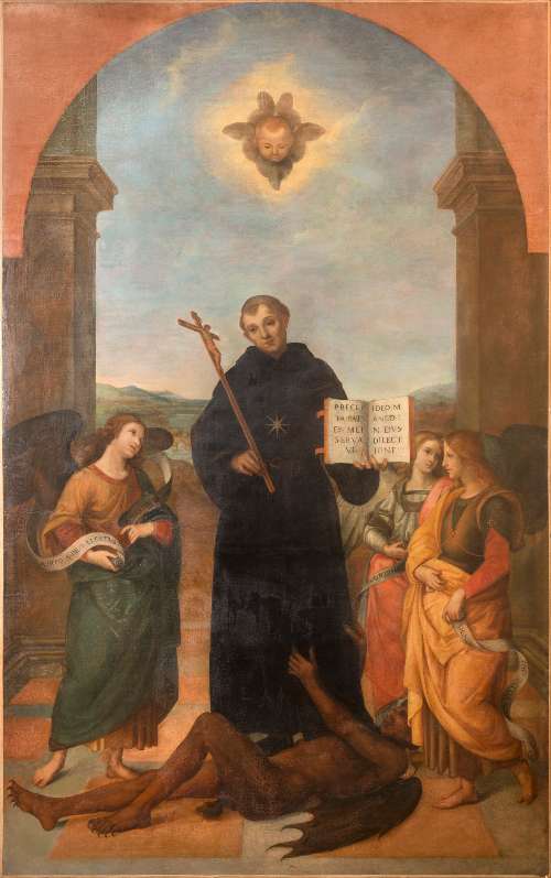 Dettaglio del documento Condividi Trova il documento in altre risorse ???scheda.servizi.button??? Stampa scheda Notifica con e-mail Facebook Twitter copia parziale dell'Incoronazione di San Nicola da Tolentino Costantini Ermenegildo <notizie 1764-1791> Dipinto Fa parte di Pinacoteca comunale. Città di Castello (PG) Scrivi una recensione e condividila con gli altri lettori. Lo trovi in Scheda Immagini Commenti San Nicola da Tolentino che calpesta il demonio. Ermenegildo Costantini. Foto di Milanesi PhotoStudio Comune di Città di Castello Quest'opera è distribuita con Licenza Creative Commons Attribuzione - Non commerciale Share Alike (CC-BY-NC-SA) 4.0 Internazionale https://www.umbriacultura.it/SebinaOpac/resource/SAM9022296