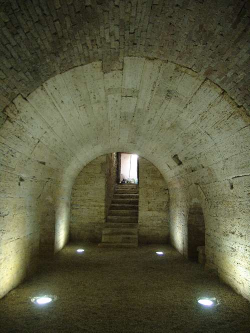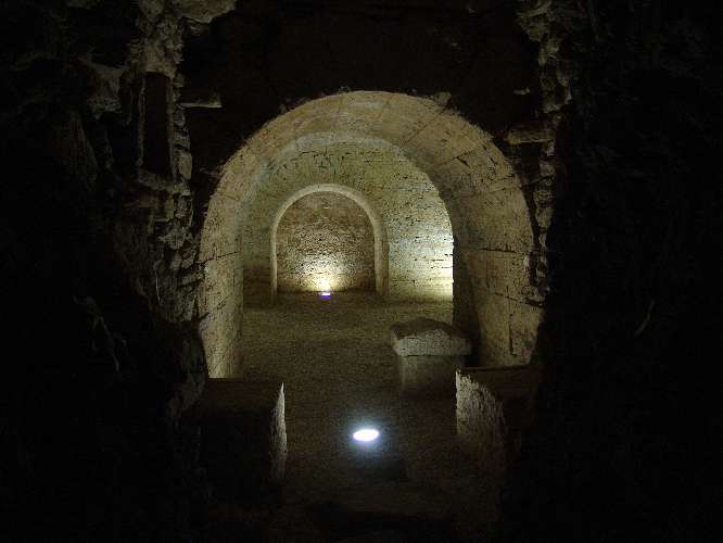 Poco distante dalla città di Perugia, in località Ferro di Cavallo, si trova all’interno della casa medievale dei Cavalieri di Malta. L’ipogeo è costituito da un ampio vano rettangolare con copertura a volta, rivestito da blocchi di travertino, perfettamente allineati e commessi a secco. Sui lati lunghi si aprono simmetricamente due piccole camere quadrate, anch’esse con copertura a volta. [...]