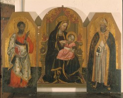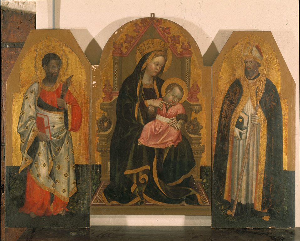 Dettaglio del documento Condividi Trova il documento in altre risorse ???scheda.servizi.button??? Stampa scheda Notifica con e-mail Facebook Twitter Madonna in trono con bambino e santi Antonio Alberti da Ferrara <1390-1400 - 1442-49> Alberti Antonio di Guido Dipinto 1431 Fa parte di Pinacoteca comunale. Città di Castello (PG) Scrivi una recensione e condividila con gli altri lettori. Lo trovi in Scheda Immagini Commenti Trittico di San Bartolomeo. Antonio Alberti. Quest'opera è distribuita con Licenza Creative Commons Attribuzione - Non commerciale Share Alike (CC-BY-NC-SA) 4.0 Internazionale https://www.umbriacultura.it/SebinaOpac/resource/SAM9022188