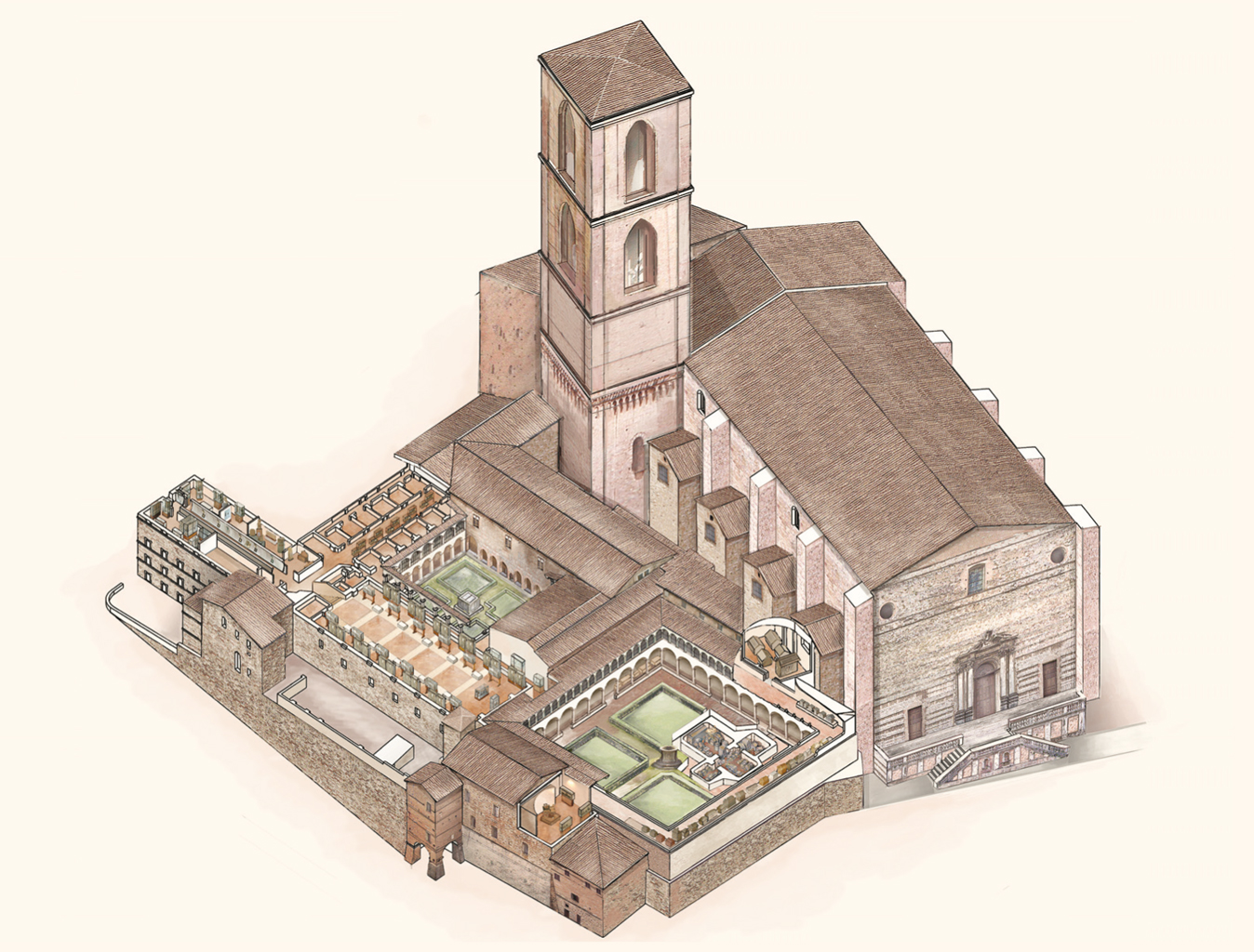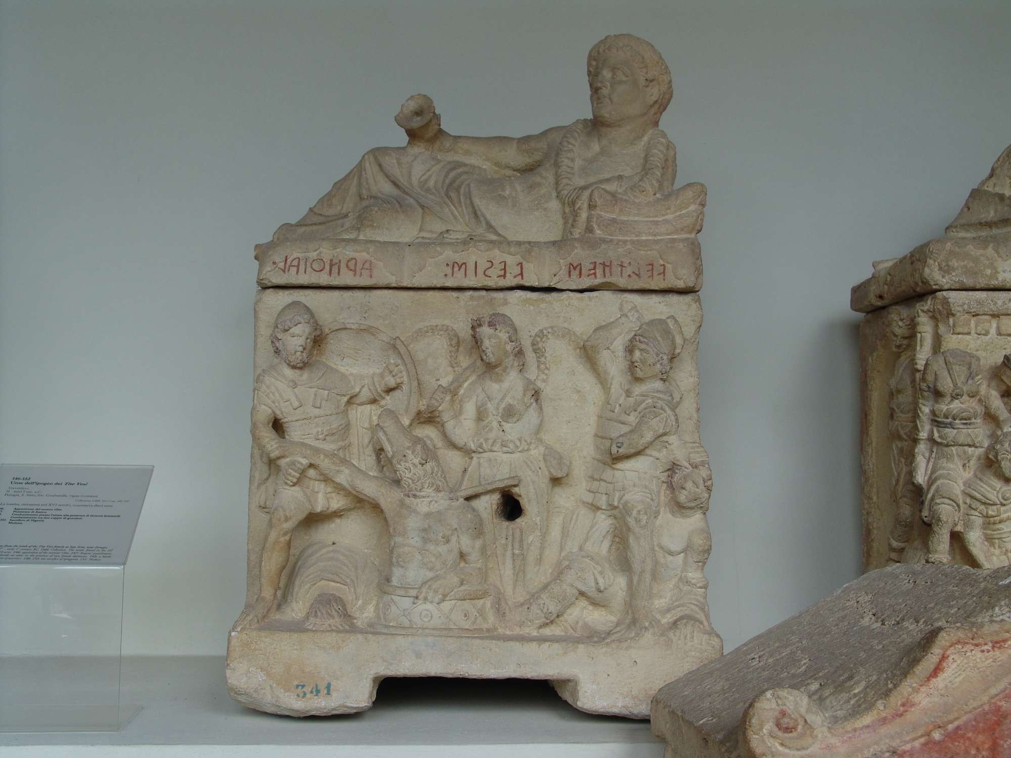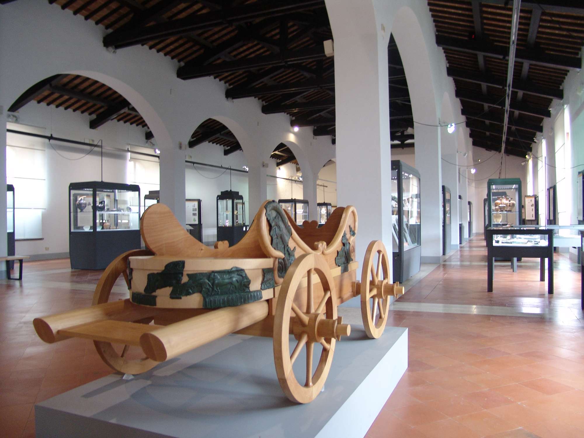 Il museo ha sede nell’ex convento di San Domenico, situato lungo corso Cavour, poco fuori le mura etrusche di Perugia. Dal 1948 il museo occupa gli spazi del complesso conventuale domenicano, eretto sul luogo di una prima chiesa duecentesca sorta nell’area dell’odierno chiostro maggiore, poi ampliato nel corso dei secoli fino ad assumere l’aspetto attuale. Con l’occupazione napoleonica e l’Unità d’Italia fu trasformato in caserma militare sconvolgendone l’assetto originario: nel chiostro maggiore trovò sistemazione la cavalleria, nell’oratorio una stalla e l’antica chiesa fu adattata a refettorio su due livelli. Alla fine della seconda guerra mondiale il complesso fu occupato prima dalle milizie tedesche, poi dalle truppe alleate e, infine, dai rifugiati. Dal 1945, ceduto al Comune, diventa luogo di cultura ospitando l’Archivio di Stato e i Musei Civici. Oltre che per ammirare il complesso architettonico di San Domenico, dal cui chiostro, uno dei più ampi e notevoli della città, è visibile il possente campanile della chiesa, la visita al Museo Archeologico Nazionale rappresenta una preziosa opportunità per conoscere le collezioni di reperti etruschi tra le più ricche d’Italia, formatesi soprattutto nel corso di scavi ottocenteschi alle necropoli in territorio perugino. Accanto ai reperti di più antica acquisizione, il visitatore potrà apprezzare numerosi materiali provenienti dagli scavi susseguitisi dopo la nascita dell’istituzione della Soprintendenza (1964) e presentati al pubblico secondo i più moderni criteri espositivi. Una consistente quantità di reperti preistorici, inoltre, completa il percorso museale. Il Museo accoglie le collezioni etrusco-romane e preistoriche formate a partire dall’Ottocento, ad opera di illustri studiosi susseguitisi nella gestione del patrimonio archeologico della città, all’epoca importante centro di studi etruscologici. Il nucleo centrale dell’esposizione contiene materiali provenienti in gran parte dal territorio e dagli scavi delle necropoli perugine, databili tra l’età arcaica e l’età ellenistica, come il sarcofago dello Sperandio e l’eccezionale complesso di bronzi arcaici da Castel San Mariano, oltre all’ipogeo dei Cutu ricostruito al vero in una distinta sezione dei sotterranei. Nei due livelli del chiostro è esposto invece il lapidario etrusco romano, costituito da molte urne cinerarie, cippi funerari e iscrizioni latine. Al piano superiore sono attualmente sistemati i materiali pre-protostorici di diversi contesti dell’Italia centrale (Umbria, Toscana, Marche e Abruzzo), della collezione Bellucci e dell’insediamento di Cetona (Toscana). Nella grande “sala dei bronzi”, che per quasi mezzo secolo ha esposto le ricche collezioni di oggetti pre-protostorici appartenute a Giuseppe Bellucci e Umberto Calzoni, è allestita una nuova sezione secondo i criteri museografici più recenti, che illustra le dinamiche di sviluppo delle civiltà degli Umbri e degli Etruschi che occupavano rispettivamente la sponda sinistra e quella destra del fiume Tevere, idealmente rappresentato in questo spazio espositivo dal corridoio centrale.