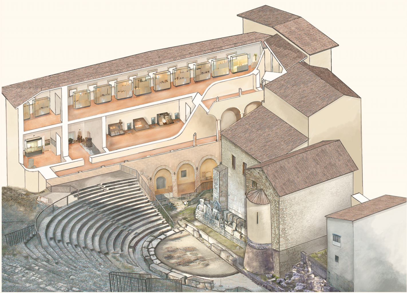 Il museo ha sede all'interno dell'ex monastero di Sant'Agata, nell’isolato meridionale del centro storico di Spoleto, costituito dall’incontro delle odierne vie Monterone e Sant’Agata, in un’area occupata in epoca romana dal teatro. Un tempo fu la sede di un monastero intitolato a Sant’Agata, sorto alla fine del XIV secolo sui resti del teatro romano (I secolo a. C) la cui scena fu fortemente alterata dalla costruzione dell’edificio religioso. Inaugurato nel 1985, il museo si articola su più livelli adattando l'esposizione all'architettura dell'edificio storico. É in corso un progetto organico di rinnovamento espositivo, che ha già completato (2008) una prima sezione di questo nuovo percorso espositivo. Attraverso reperti provenienti anche dalle ricerche più recenti sono documentate le prime attestazioni della presenza umana nell’area della rocca e del centro storico, risalenti all’età del bronzo e lo sviluppo dell’insediamento nella fase umbra, testimoniato soprattutto dai ricchi corredi di VII-VI sec. a.C. della necropoli di Piazza d’Armi. Al secondo piano del Museo sono esposti reperti provenienti dalla Valnerina, un territorio che fu sempre in stretto rapporto con Spoleto. Si segnalano in particolare i cinerari dell’età del bronzo finale dalla necropoli di Monteleone di Spoleto, i reperti dai santuari di Montefranco, i corredi funebri dalla necropoli ellenistica e romana di Norcia. Provengono dal medesimo territorio anche molti dei reperti della collezione Canzio Sapori, recentemente donata allo Stato. Tra di essi si segnalano un cinerario ad impasto con decorazione geometrica da Ponte di Cerreto e un notevole ritratto maschile tardorepubblicano da Ferentillo Nella sezione dedicata all’illustrazione del teatro romano sono esposte le sculture decorative rinvenute nel monumento durante gli scavi degli anni Cinquanta del Novecento, tra cui una statua di Aura (personificazione della brezza leggera), rilavorata come Venere; riconosciuta da studi recenti come un originale marmoreo greco di V secolo a.C., è stata rilavorata in età romana per adattarla alle fattezze della dea genitrice della dinastia giulio-claudia. L’interesse di tale scoperta è accresciuto dalla rarità degli originali statuari greci che, prevalentemente, ci sono noti attraverso le molteplici copie fatte dai romani. Il teatro, che è parte integrante della visita del museo, è databile al I sec. a.C. e in parte venne incorporato in edifici posteriori, subendo un parziale smantellamento in epoca medievale. Sistematici interventi di restauro, iniziati negli anni Cinquanta, hanno permesso il recupero dell'intero complesso ripristinando le gradinate. Il piano inferiore è comunque ben conservato, con l'ambulacro ancora percorribile. Durante le manifestazioni connesse al Festival dei Due Mondi, il teatro è utilizzato per gli spettacoli.