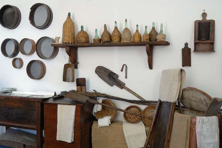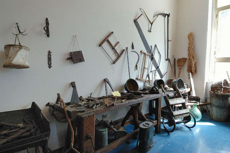 Ogni sezione del museo per­mette al visitatore di cogliere, oltre alla dimensione materia­le, anche l'aspetto simbolico e rituale che gli oggetti di uso quotidiano assumevano nella vita dell'uomo: credenze, pre­giudizi, superstizioni, riti, im­maginazione e fantasia, che hanno sempre accompagnato il lavoro nei campi. L'allesti­mento è stato realizzato in modo da collocare ciascun oggetto all'interno di cicli tematici: ogni strumento di la­voro rivive così la propria sto­ria, perfettamente ambientato nei luoghi dove veniva normalmente usato.