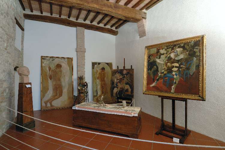 Il complesso monastico, restaurato negli anni Ottanta dalla famiglia Mastino Calori, raccoglie sculture in bronzo e opere pittoriche prodotte tra gli anni Dieci e gli anni Cinquanta del Novecento, nonchè numerosi bozzetti e i suoi strumenti di lavoro. Tra le opere esposte è il pregevole bronzo Italica Gens, premiato in occasione della Biennale di Venezia del 1930. Nella sede è anche custodito l’archivio dello scultore.