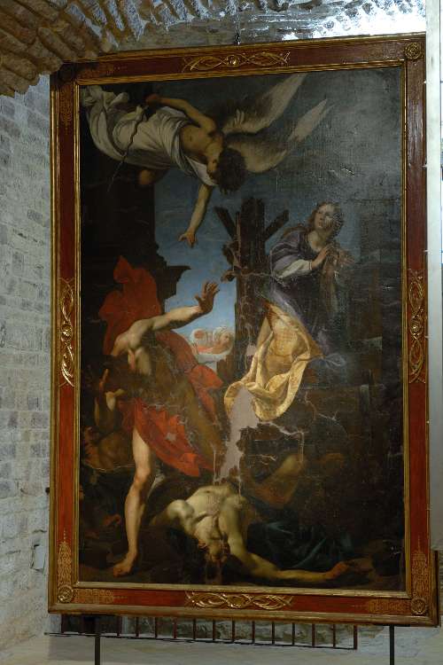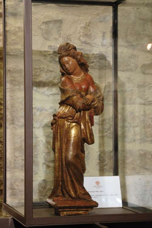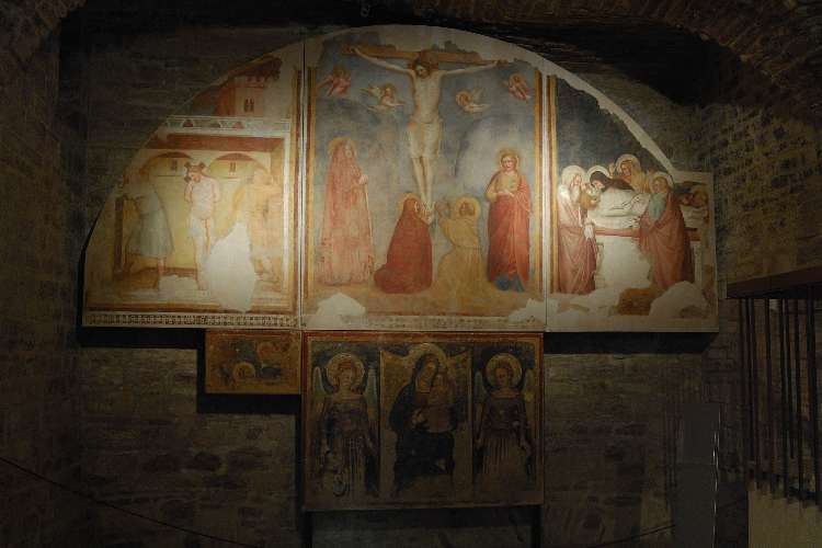 The Museo Diocesano and the Cripta di San Rufino are in Piazza San Rufino, in the northwest sector of Assisi. This has been the area of the Superior Terrace, whose squared travertine marble blocks on the southern side of the wall are still visible inside the Cathedral and Crypt of San Rufino, since the 2nd century B.C. Along the wall, near the bell tower, there is a quadrangular water cistern. [...]