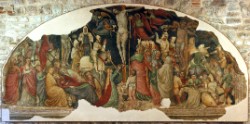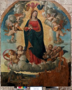 The 15th century is well represented by works of painters in the circle of Ottaviano Nelli and by a fresco cycle with scenes of the Passion of Christ, coming from the Crypt of the Church of Santa Maria dei Laici, while, the subsequent centuries are represented by works of Benedetto Nucci, Ignazio Danti, Pomaracio, Francesco Allegroni and Sassoferrato.