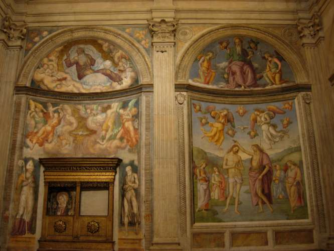The oratory, in an excellent Renaissance style, boasts the presence of the famous fresco with the Baptism of Jesus, excellent piece painted around the first half of the 16th century by Pietro Perugino.