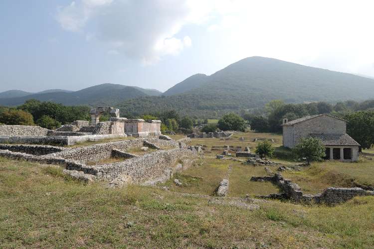 In this rich and active old center, designed during the Augustan ages, the remnants of the main public, civil and religious monuments are still visible: the Curia and the Gemini Temples—overlooking the Forum—the Basilica, the Theater and the Amphitheater. The latter is positioned along the Via Flaminia, which entered into the town through the monumental Arch of San Damiano. The Via Flaminia urban stretch constituted the “Cardo Maximus”—main axis, from north to south, in Latin. It was paved with large blocks of stone called basoli and had edge-stones on the sides functioning as sidewalks and gutters to drain water. Funerary monuments are still visible to the north of the Arch of San Damiano, while on the opposite side there are Thermal Bath facilities, where the work of excavation has not been completed yet. The water supply was provided through some Cisterns, one of them—after having had several different functions—has been transformed into a Antiquarium, and destined to house the display of the architectural fragments and frescoed detached plaster and architectural terracotta, as well as a series of sculptures for a funerary destination. The medieval Church of Santi Cosma e Damiano, built on a pre-existing Roman edifice along the Via Flaminia, testifies to the spreading of Christianity. This construction has been used as a depot of archaeological materials for a long time, and in recent times has been recovered and transformed into a display structure.