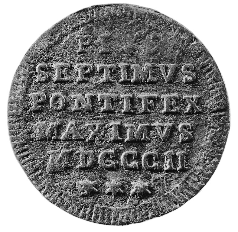 Dettaglio del documento Share Find the document in other resources ???scheda.servizi.button??? Print Notify by e-mail Facebook Twitter PIUS/ SEPTIMUS/ PONTIFEX MAXIMUS MDCCCII/ (tre stelle) Moneta/gettone 1800 d.C. - 1808 d.C. Part of Pinacoteca comunale - Palazzo Vallemani. Assisi (PG) Write a review and share it with other readers. Find it at Details Images Comments Monete dei Comuni, Repubbliche e Signorie. Stato della Chiesa. Zecca di Roma. Mezzo baiocco del 1802. D/ PIUS/ SEPTIMUS/ PONTIFEX MAXIMUS MDCCCII/ (tre stelle) Foto di Giorgio, Lucarini Quest'opera è distribuita con Licenza Creative Commons Attribuzione - Non commerciale Share Alike (CC-BY-NC-SA) 4.0 Internazionale https://www.umbriacultura.it/SebinaOpac/resource/SAM9018911?locale=eng