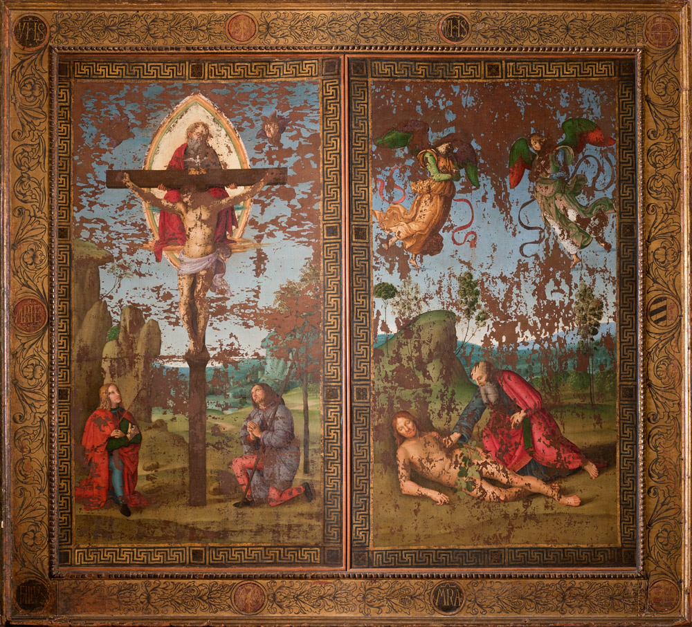 Dettaglio del documento Condividi Trova il documento in altre risorse ???scheda.servizi.button??? Stampa scheda Notifica con e-mail Facebook Twitter Trinità e i santi Rocco e Sebastiano. Creazione di Eva e due angeli Raffaello Sanzio <1483 - 1520> Dipinto 1501 - 1503 Fa parte di Pinacoteca comunale. Città di Castello (PG) Scrivi una recensione e condividila con gli altri lettori. Lo trovi in Scheda Immagini Commenti Gonfalone della Santissima Trinità. Trinità e i santi Rocco e Sebastiano. Creazione di Eva e due angeli. Raffaello. Foto di Milanesi PhotoStudio Comune di Città di Castello Quest'opera è distribuita con Licenza Creative Commons Attribuzione - Non commerciale Share Alike (CC-BY-NC-SA) 4.0 Internazionale https://www.umbriacultura.it/SebinaOpac/resource/SAM9022216